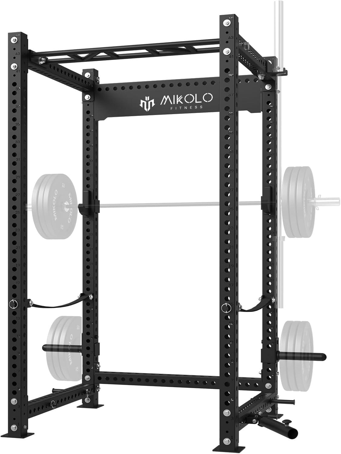 Mikolo Power Cage, Power Rack with Cable Crossover System, 1500LBS Squat Rack with LAT Pull Down System, Workout Cage with Pulley System for Fitness Home Gym(Black)