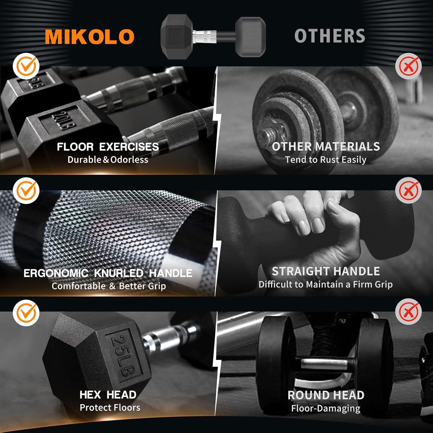 Mikolo Dumbbell Sets with Rack, Rubber Hex Dumbbells, Multiple Choices in 160/200/380/450/550LB, Hand Weights with Chrome Handle for Strength Training