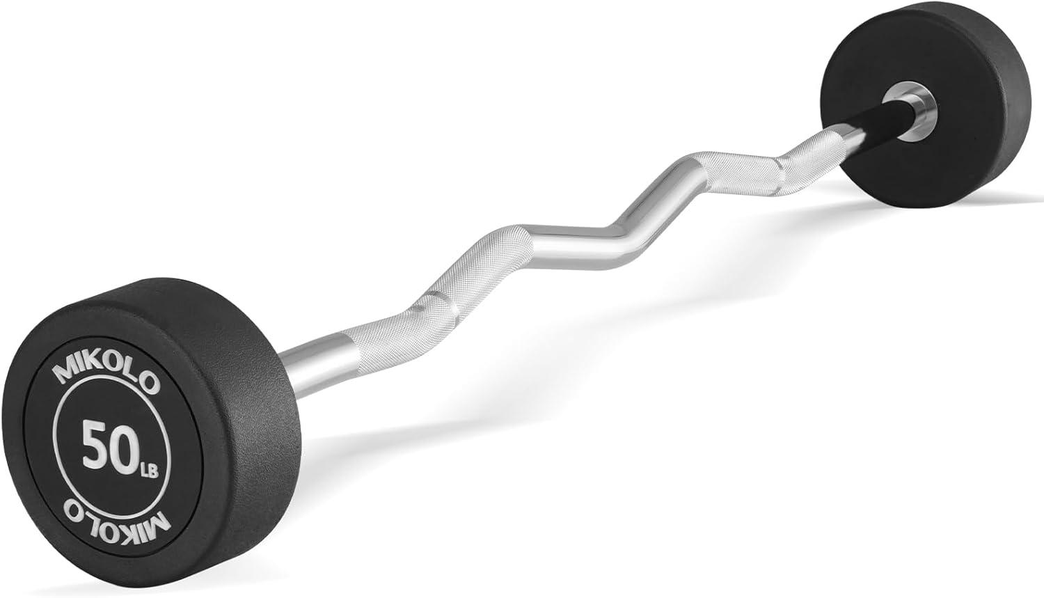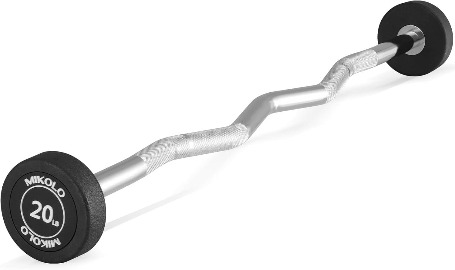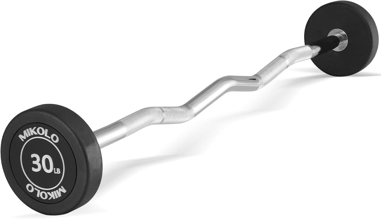 Mikolo Fixed Barbell, Pre-Loaded Weight EZ Curl Bar, PVC Barbell Weight Set for Strength Training and Weightlifting(Black)