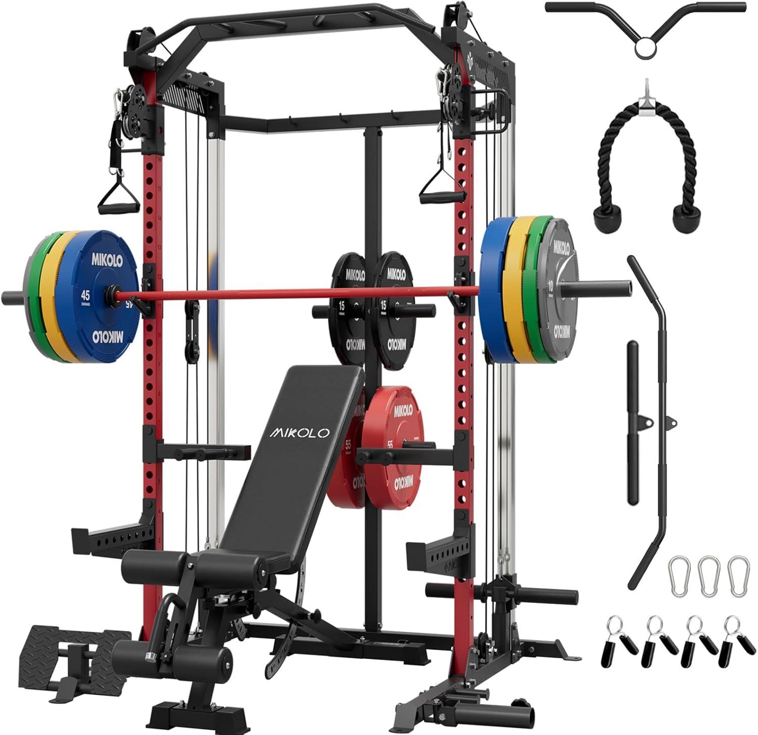 Mikolo Power Cage, 2000LB Power Rack with Independent Dual Pulley System, Multi-Function Home Gym Workout Machine for Cable Crossover(Black)