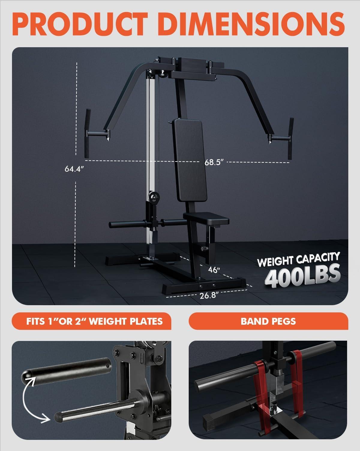 Mikolo LAT Pulldown Machine, LAT Row Cable Machine with Leg Hold Down Attachment, LAT Tower with Cable Row Attachment, Cable Machine Home Gym