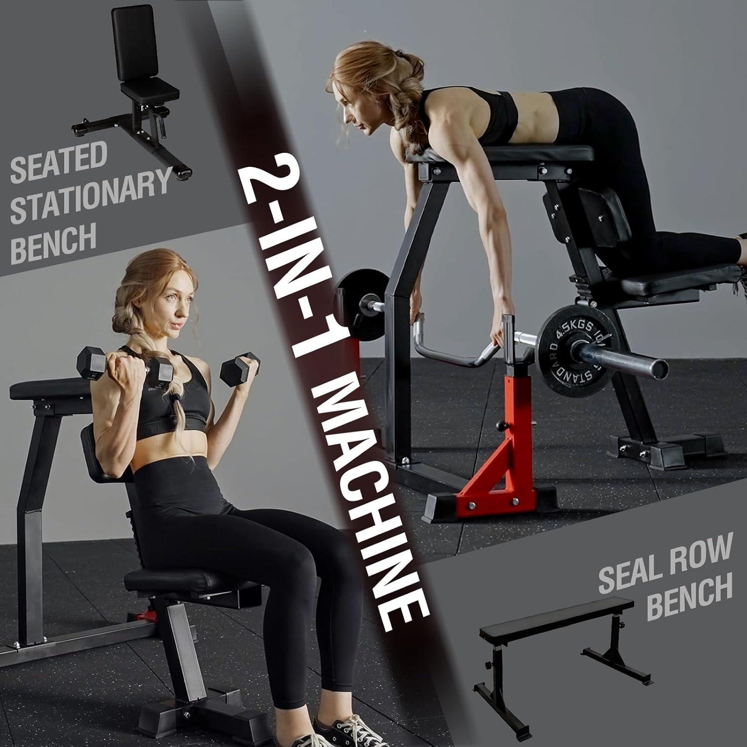 Mikolo Seal Row Bench, Back Extension Machine Back Machine, with Stationary Bench Combo, Upper Body Workout Equipment for Reverse Hyper and Lateral Raise, 1500LBS Capacity
