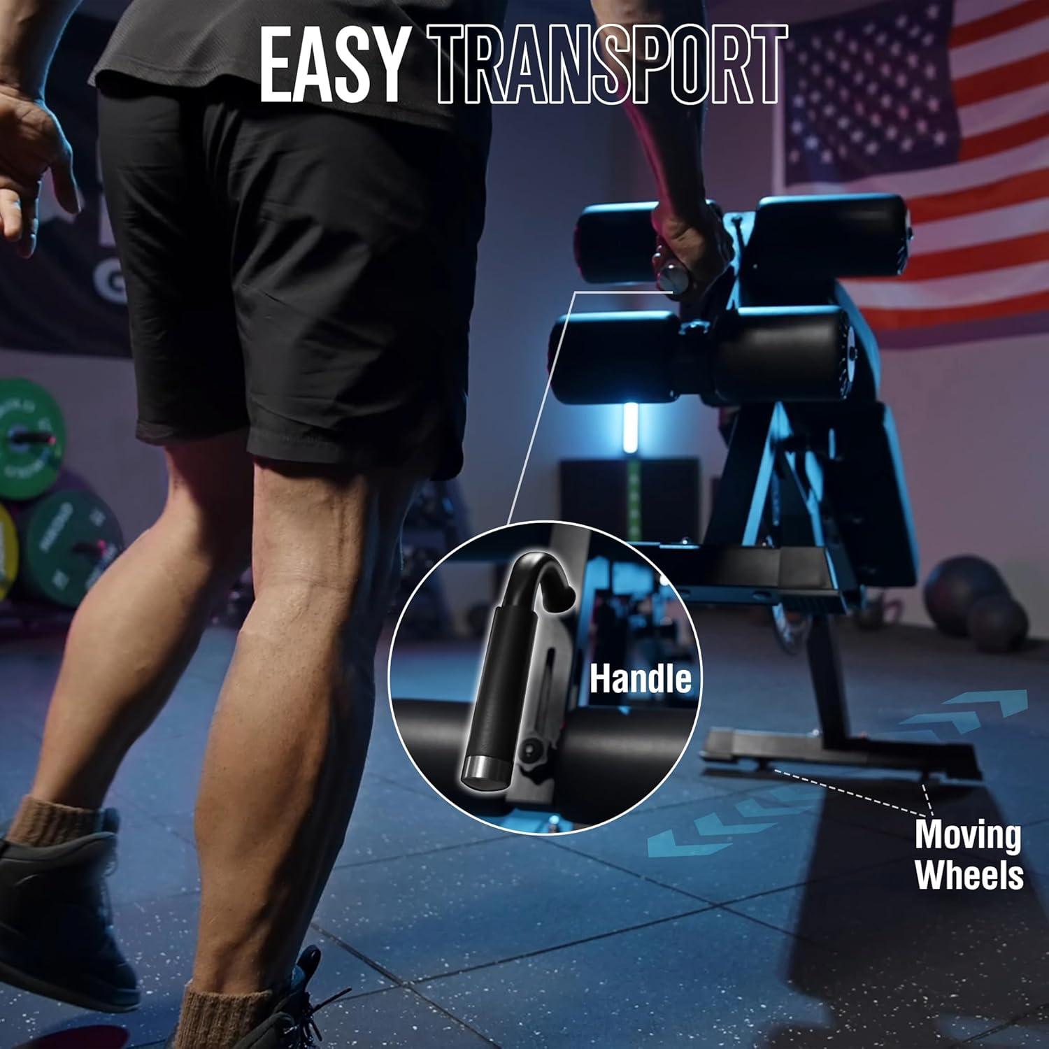 Space-Saving Design – Workout bench can be stored upright, occupying only 3.2 square feet of space. With integrated wheels and a handle, it can be moved effortlessly. A protective plastic liner on the back pad prevents the cushion from fraying.