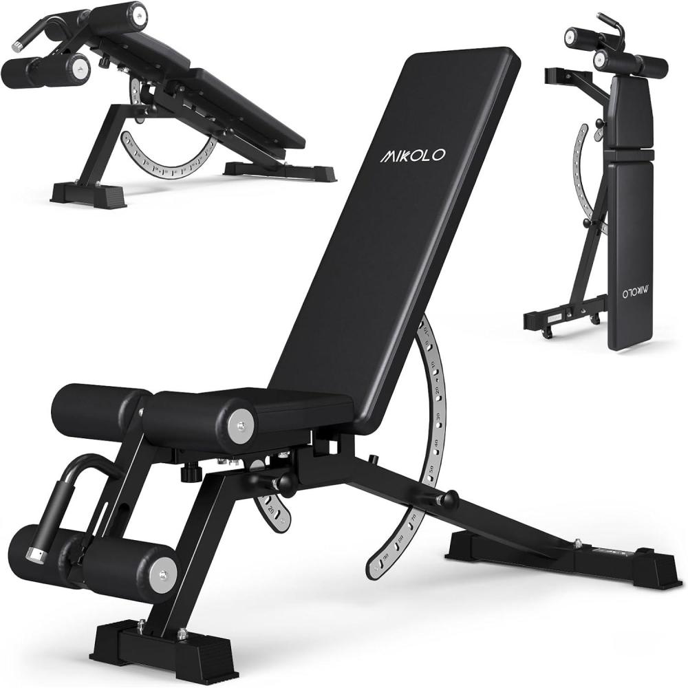 Mikolo 1200LB Weight Bench, Adjustable Workout Bench with Detachable Leg Support, Vertical Storage Space-Saving Exercise Bench for Home Gym, Incline Flat Decline Sit Up Bench for Full Body Fitness(Black)