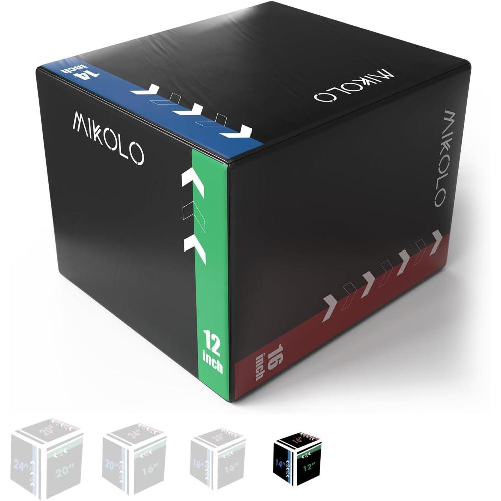 Mikolo 3-in-1 Foam Plyometric Box – Soft Jump Box with Solid Wood Core, High-Density Foam and Non-Slip Cover – No Assembly Required for Home Gym Workout(16″ x 14″ x 12″)