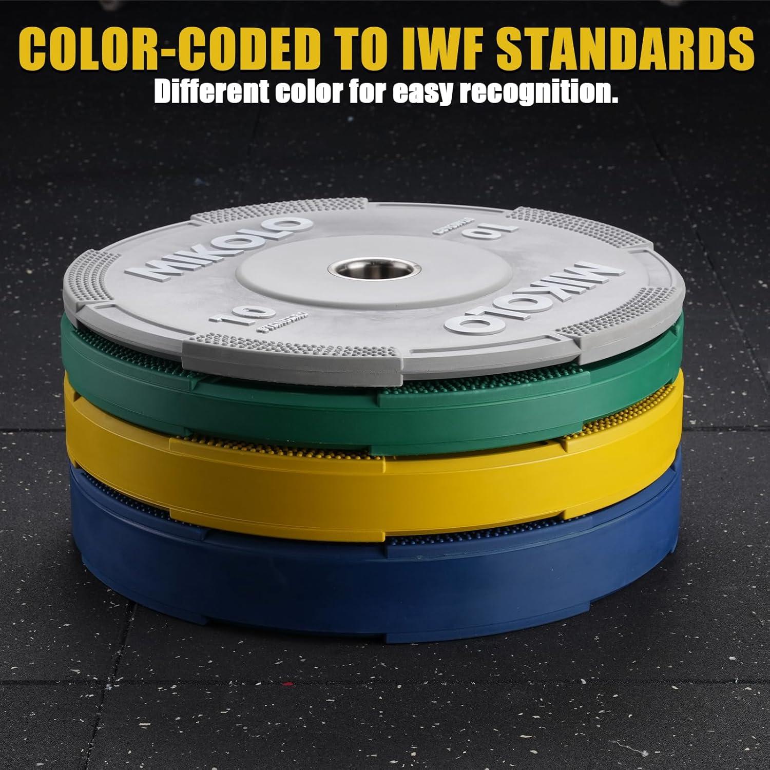 Mikolo Olympic Bumper Plates & Barbell Plates 2-Inch Weight Plate Set – Steel Insert, Low-Bounce & Quiet for Home Gym Strength Training (Weights: 45 * 2-230LB)(230LB SET)