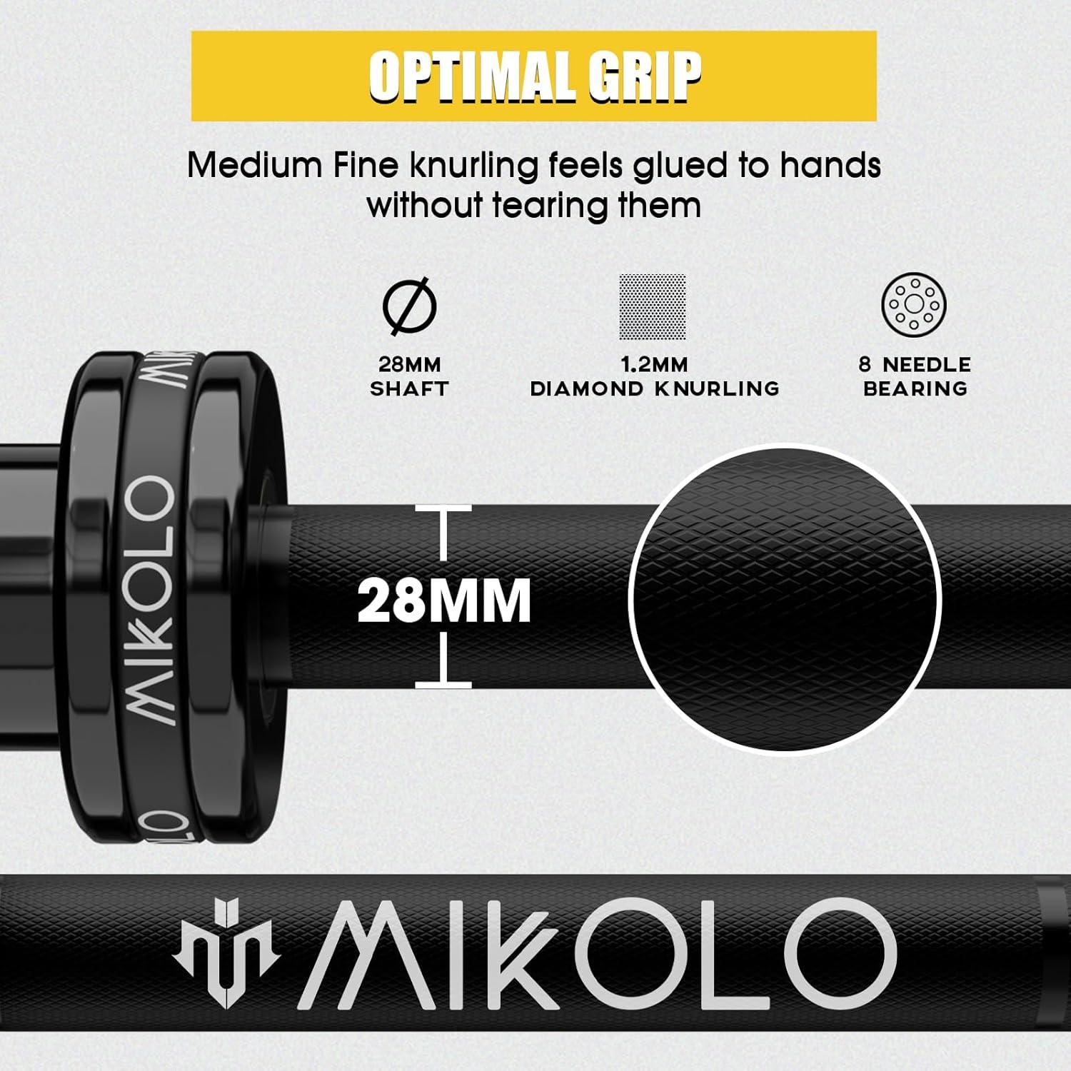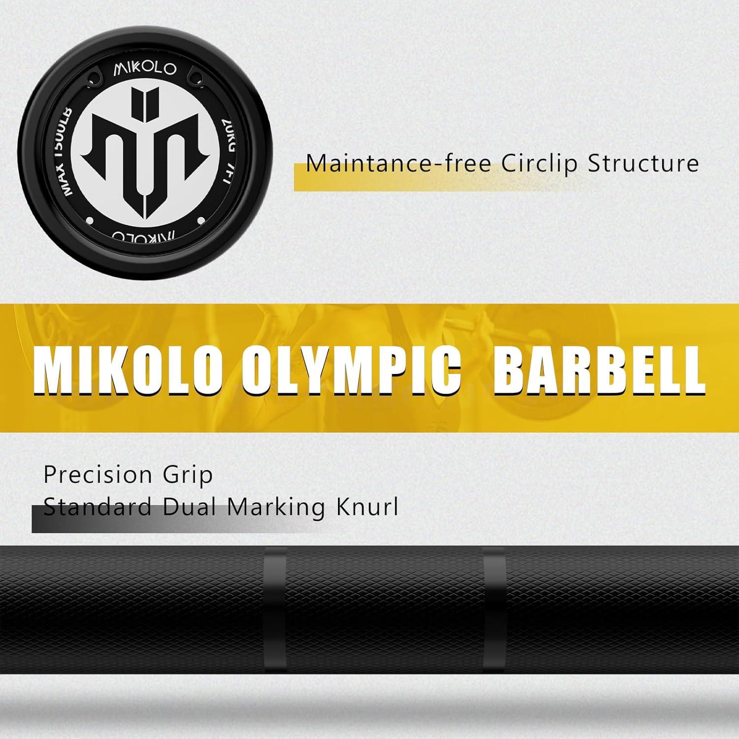 Mikolo 7ft Olympic Barbell, Barbell for Weightlifting and Powerlifting 45lb, Olympic Bar for 1500lbs Capacity, Weight Bar Fit 2” Standard Weights