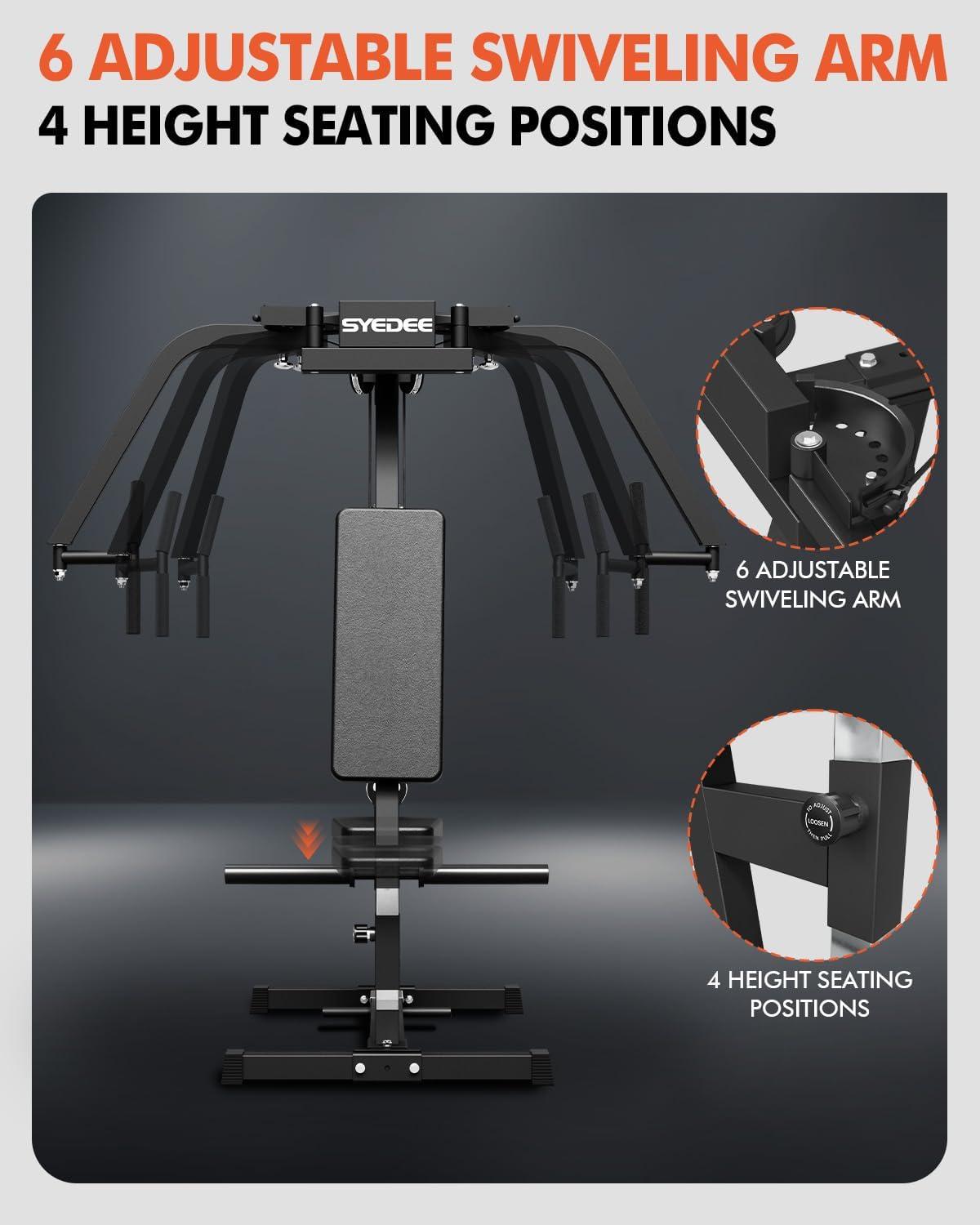 【Adjustable Features】This chest fly machine features dual overhead resistance cams that allow for an independent range of motion for single-arm rows and collaborative movement in unilateral or bilateral conditioning. With articulating arms for both unilateral and bilateral chest development, this pec fly machine offers 6 adjustable positions on the swiveling arms to provide optimal pectoral and rear deltoid development, delivering a deep, full-stretch workout