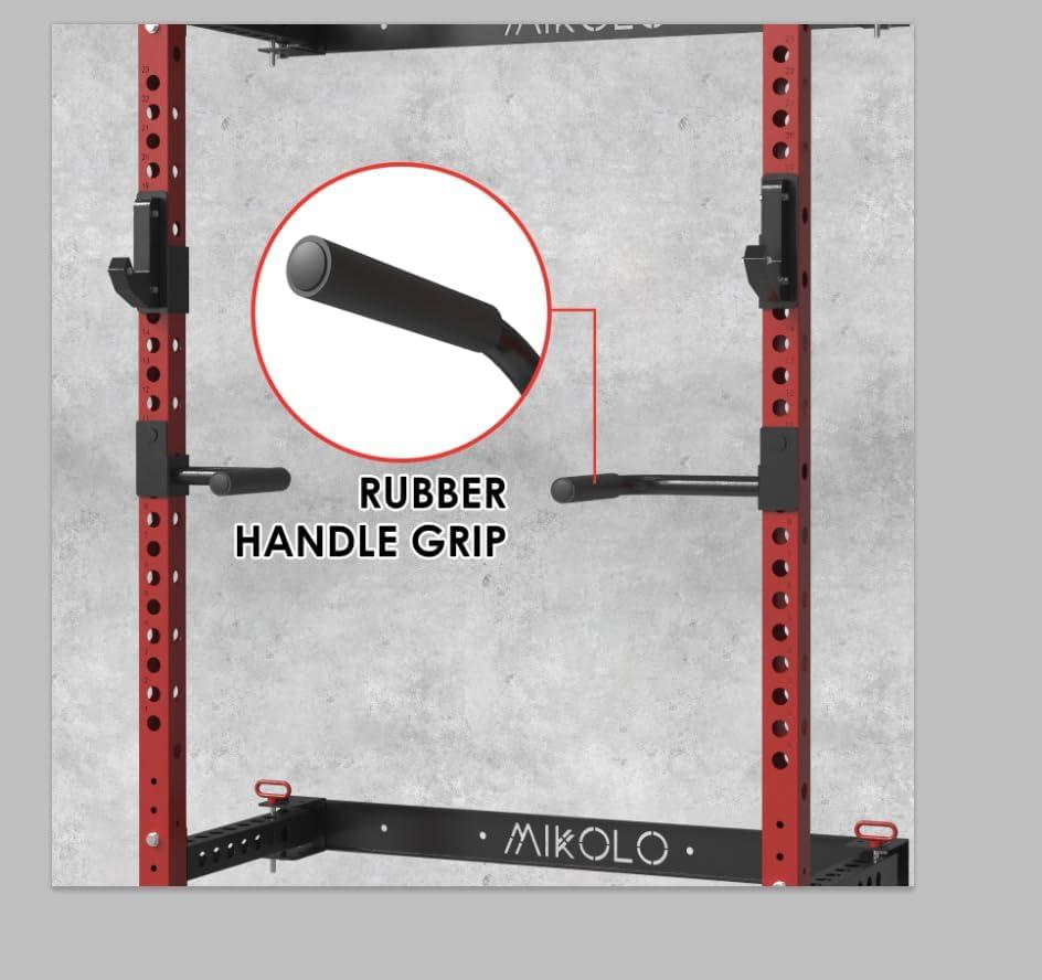【Universal Fit】: Designed for 2×2-inch steel uprights with 1-inch diameter holes, our dip bar attachment for squat rack ensures compatibility with a wide range of squat racks, especially for Mikolo Folding Squat Rack.