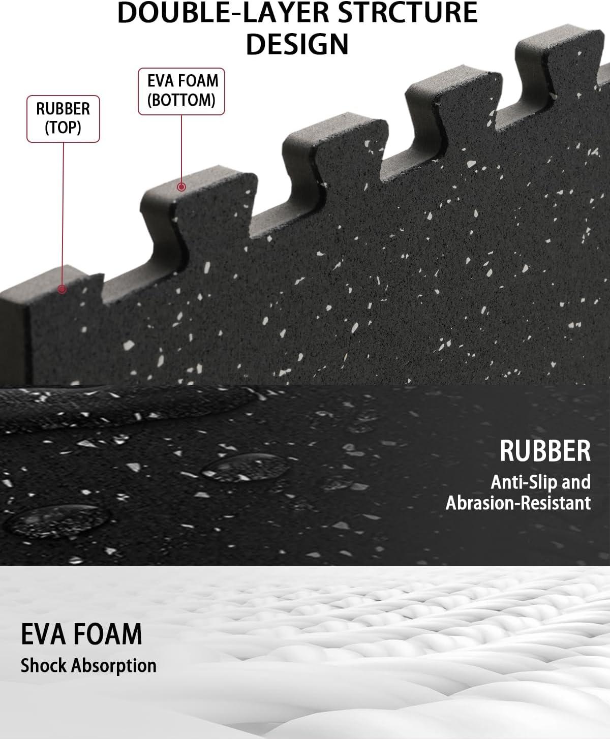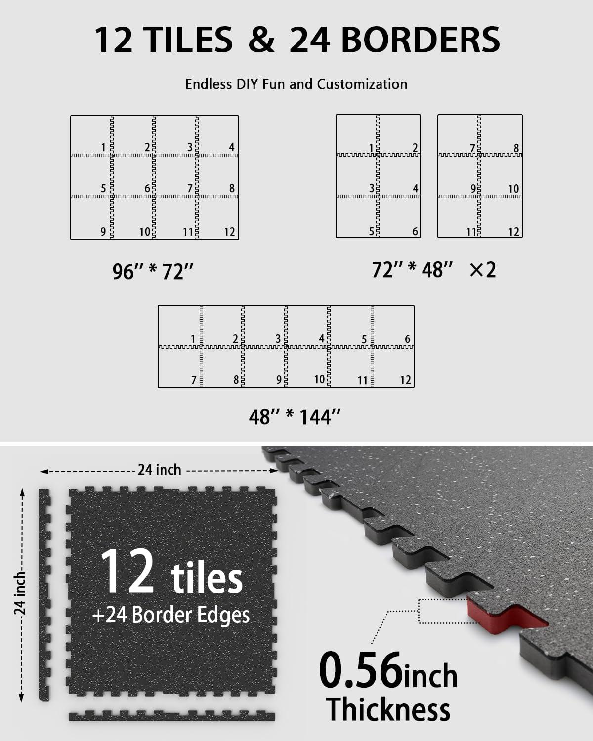 Mikolo 0.56” Thick 12 Pcs 48 Sq Ft Gym Flooring Mats, High-Density EVA Foam with Rubber Top, Interlocking Exercise Equipment Mats for Home Gym, Protective Workout Mat(24″L x 24″W x 0.6″Th | 12 Tiles (48 Sq Ft))
