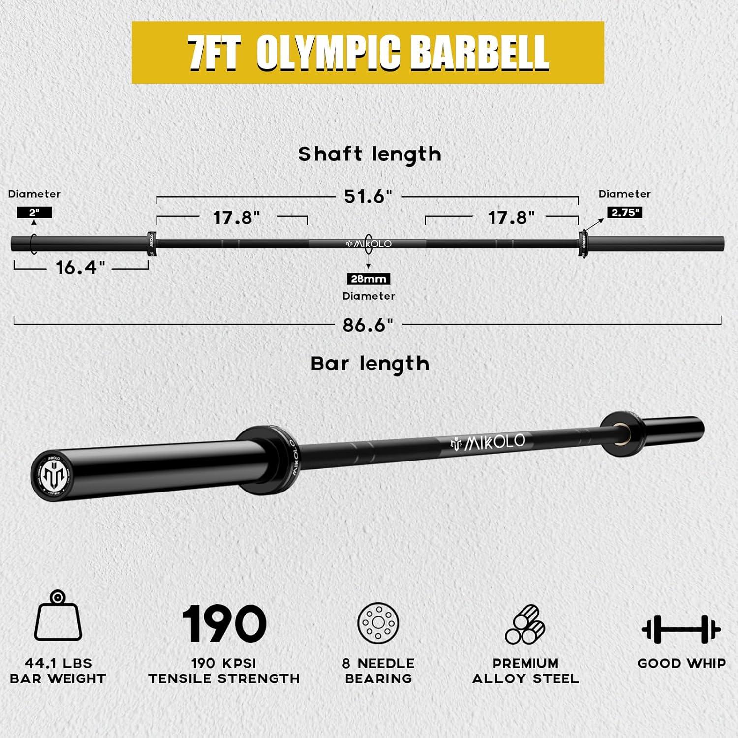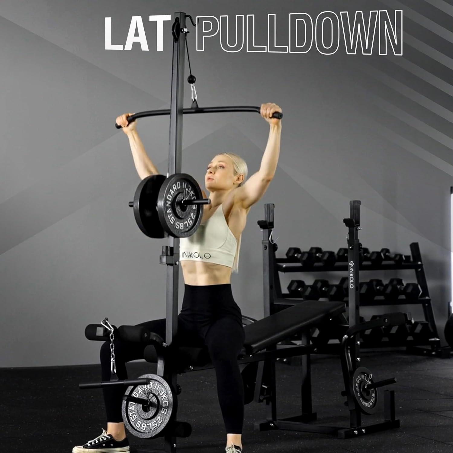 Mikolo 8 in 1 Olympic Weight Bench Set with Leg Extension and Leg Curl, Multi-Function Bench Press Set with Preacher Curl Pad and Chest Fly, Full-Body Strength Training Equipment(Black with Barbell for 1-inch plate)